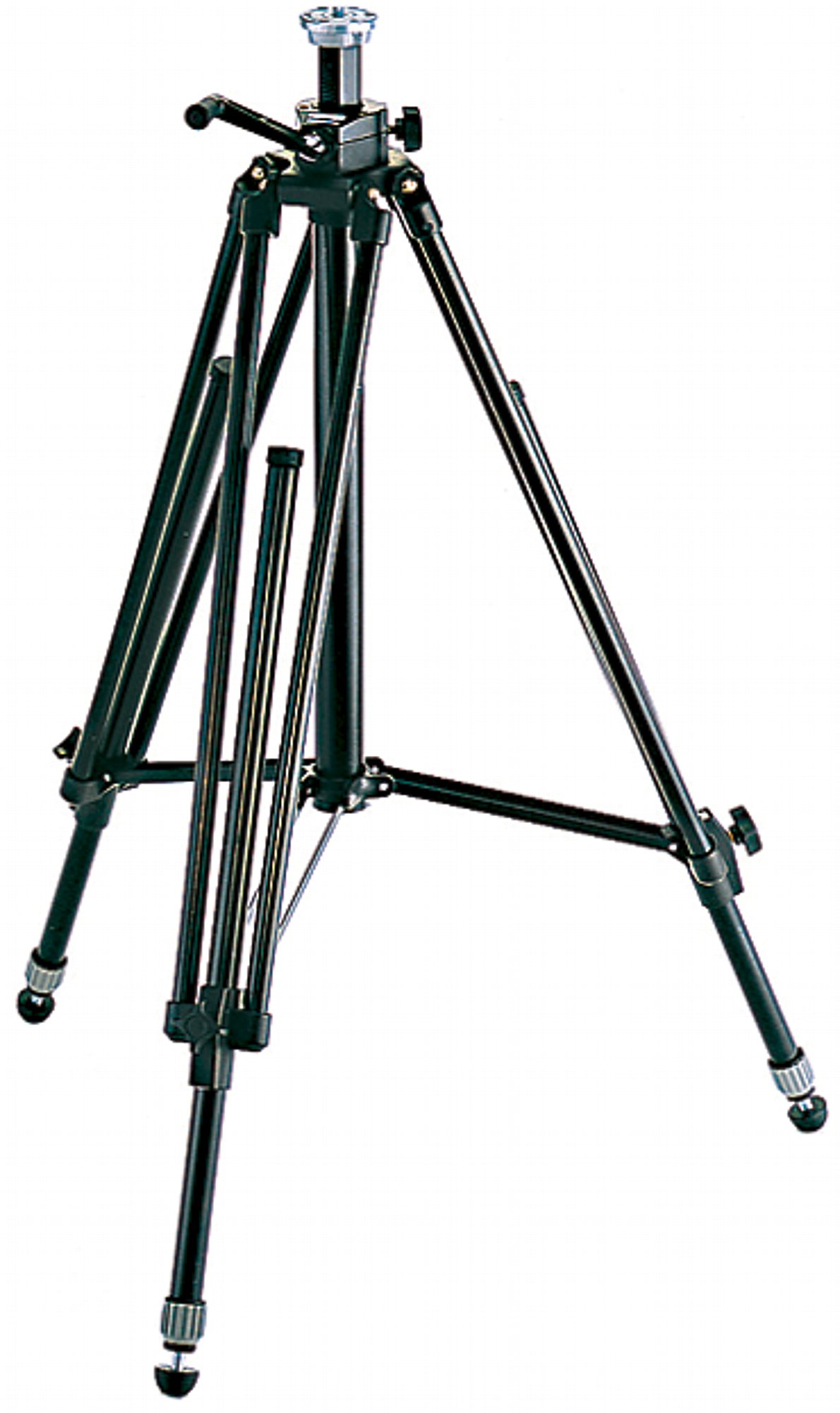Großes, schweres Kamerastativ mit selbsthemmender Kurbelmittelsäule, Alu-Montageplatte (3/8" und Sicherungsschrauben) für Manfrotto Neigeköpfe, Nivellier-Libelle, Mittelstreben für hohe Stabilität, Beinanstellwinkel stufenlos einstellbar, Doppelrohrausführung mit Feststellschrauben, Gummifüße mit herausdrehbaren Spikes, Tragegurt; Farbe Schwarz – Länge geschlossen, zusammengeschoben 82 cm – minimale Arbeitshöhe 77 cm – max. Arbeitshöhe (eingefahrene Mittelsäule) 179 cm – max. Arbeitshöhe (ausgefahrene Mittelsäule) 227 cm – Gewicht 4,15 kg – maximale Belastbarkeit 12 kg