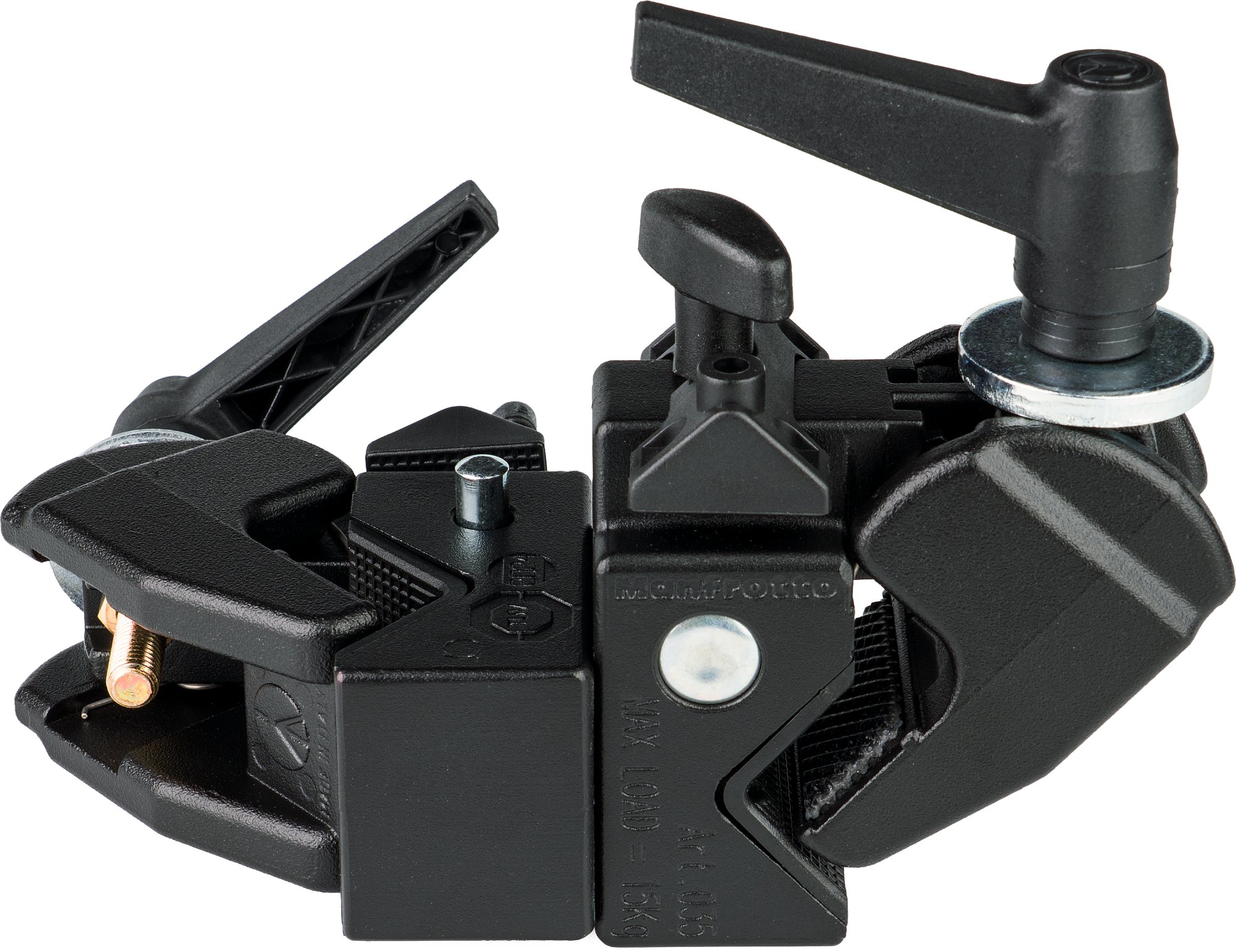 Die Klemmen der Manfrotto Super Clamp Produktfamilie sind wahre Universalgenies. Sie lassen sich blitzschnell an Rohren mit einem Durchmesser von 13 bis 50 mm sowie an Regalbrettern, Tischkanten u. ä. bis 30 mm Dicke befestigen und halten bombenfest. Die Super Clamps bestehen größtenteils aus Aluminium und tragen bei einem Eigengewicht von 410 g (035 Super Clamp und Virtual Reality Clamp) bzw. 470 g (635 Quick Action Super Clamp) eine maximale Last von 15 kg. Über den 5/8"- (16 mm Hexagonal) Standardsockel sowie die weiblichen Gewindegänge mit 1/4" und M5 (bzw. 3/8" und M5 bei der M035VR) lassen sich Manfrotto-Stativwechselplatten und anderes Zubehör anschließen. Die Manfrotto Super Clamps sind aus dem professionellen und ambitionierten Foto- und Filmbetrieb im Studio oder on Location nicht wegzudenken.