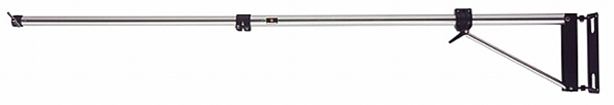 Galgen für Wandmontage mit 2 Sektionen, 1 Auszug zur Aufnahme von fototechnischen Geräten mit 5/8" Stativanschluss – min. Länge 120 cm – max. Länge 210 cm – Rotation: 160° vertikal, 180° horizontal – Befestigung, Stativanschluss 25 + Spigot 013. – Gewicht 2,3 kg – maximale Belastbarkeit bei max. Auszug 4,5 kg