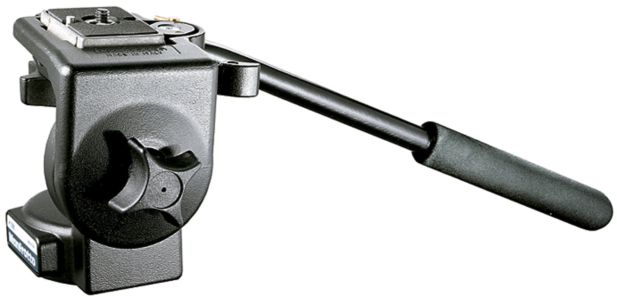 Ein leichter Fluid-Neigekopf mit verstellbaren Schwenkarm und einem Schnellwechselsystem mit Zusatzsicherung. Weiche Schwenk- (360°) und Neigefunktion (+90° bis -90°) mit separaten Blockierschrauben.