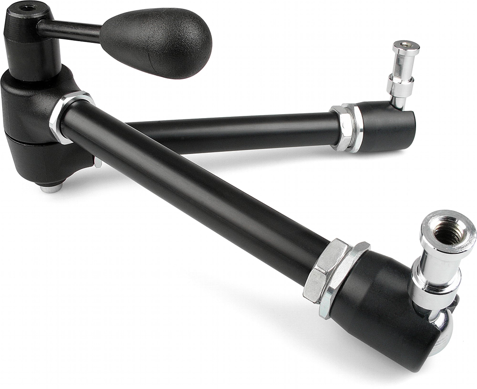 Der praktische 143N Magic Arm ist aus Aluminium gefertigt und mit dem zentralen Verriegelungshebel lässt sich die Position in allen Richtungen fixieren. Bei einem Eigengewicht von 1,17 kg kann er Geräte bis 3 kg tragen und hat eine maximale Länge von 53 cm. Der Arm verfügt über eine 16-mm-Hülse mit Zapfen sowie verschiedene Schraubengrößen (6,4 mm, 9,5 mm) und ein 9,5-mm-Gewinde für gängige Kameraausrüstung.