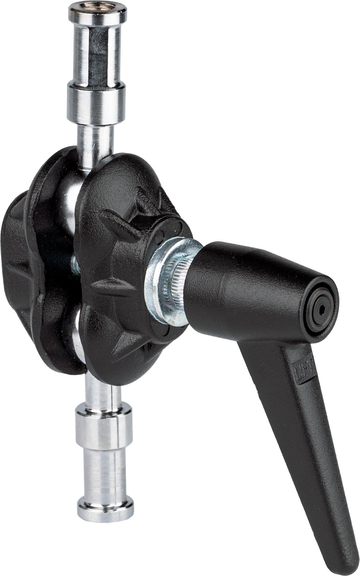 Robuster Doppel-Kugelkopf vielseitig einsetzbar, 5/8" Bolzen beidseitig, Farbe Schwarz – Höhe 14 cm – Gewicht 0,4 kg – maximale Belastbarkeit 5 kg