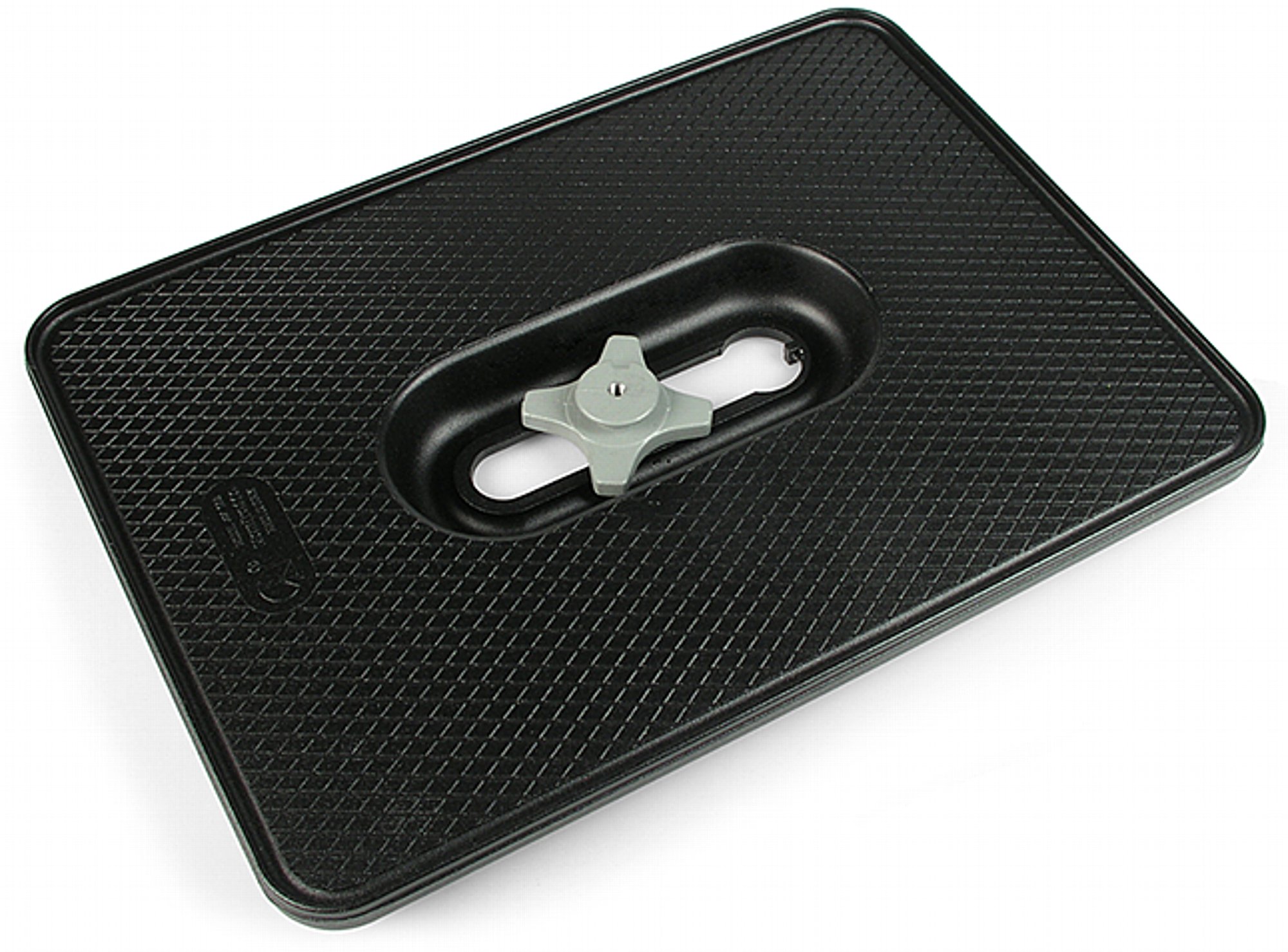 Stabile Alu-Platte zur Aufnahme von Monitor oder Projektor; geeignet für alle Stative oder Stativwagen mit 1/4"- oder 3/8"-Gewinde. Eigengewicht 1 kg, Tragfähigkeit bis 20 kg.