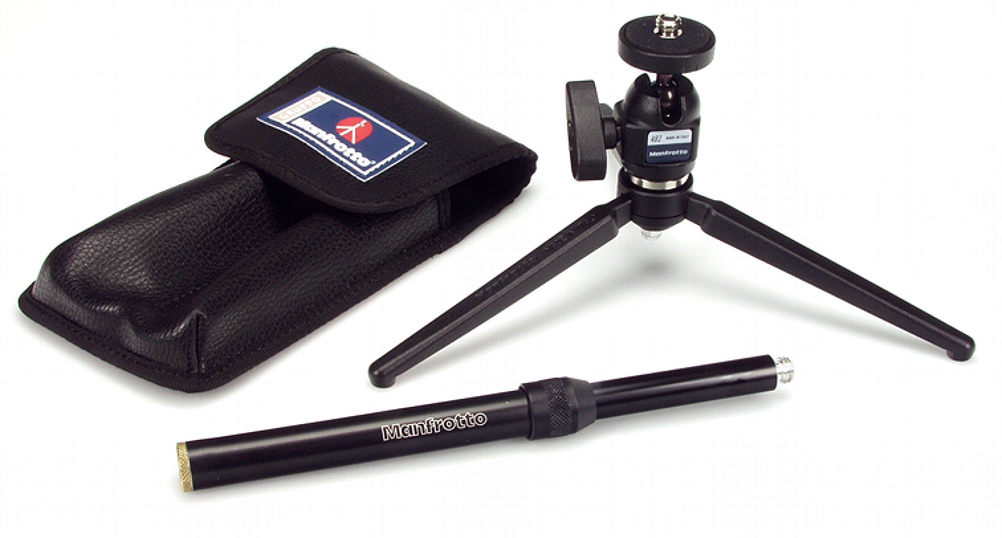 Die seit vielen Jahren bewährten Tischstative der Manfrotto 209-Serie sind hervorragend verarbeitet und sehr stabil, und da sie komplett aus Aluminium gefertigt wird ist es zudem auch noch leicht. Die drei ausklappbaren Beine bilden eine große Standfläche, und erzeugen einen niedrigen Schwerpunkt. Die Füße haben Kork-Auflageflächen und schonen dadurch empfindliche Oberflächen. Das Tischstativ 209 ist ohne Stativkopf wahlweise mit 3/8"-Gewindebolzen und mit 1/4"-Gewindebolzen erhältlich sowie in diversen Sets mit Zubehör wie ausziehbarer Verlängerung, Kugelkopf, Tasche oder Gewindeadapter. Alle Ausführungen besitzen eine maximale Belastbarkeit von 2 Kilogramm.