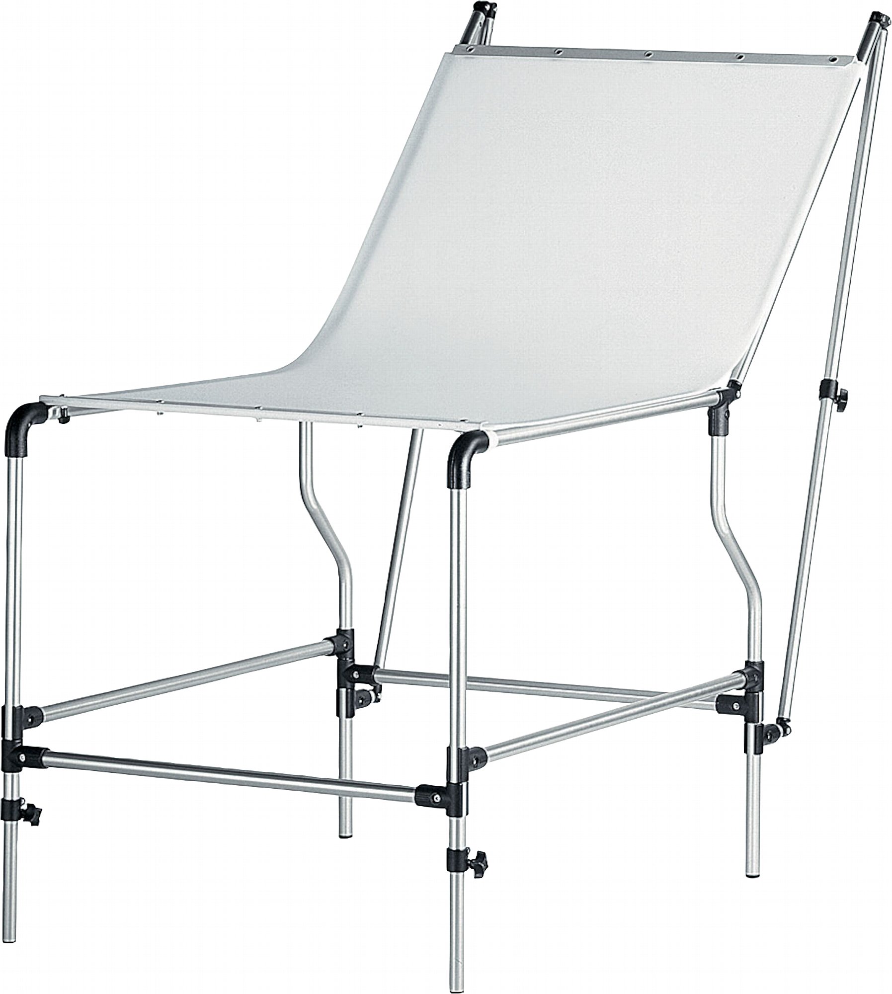 Ähnliches Design wie der Aufnahmetisch 220 aber kleinere Ausführung. Aufnahmetisch mit weißer transparenter Perspex-Platte (eine Seite sandgestrahlt), für Front- und Durchlicht geeignet, Plattengröße: 150 x 70 cm, Aufnahmehöhe: 70 cm Höhe mit vollangewinkelter Platte 157 cm, variabler Neigewinkel für die Platte, vordere Beine höhenverstellbar, ausbaufähing mit dem Manfrotto 25 mm Multitube Rohrsystem. Gewicht: 10 kg.