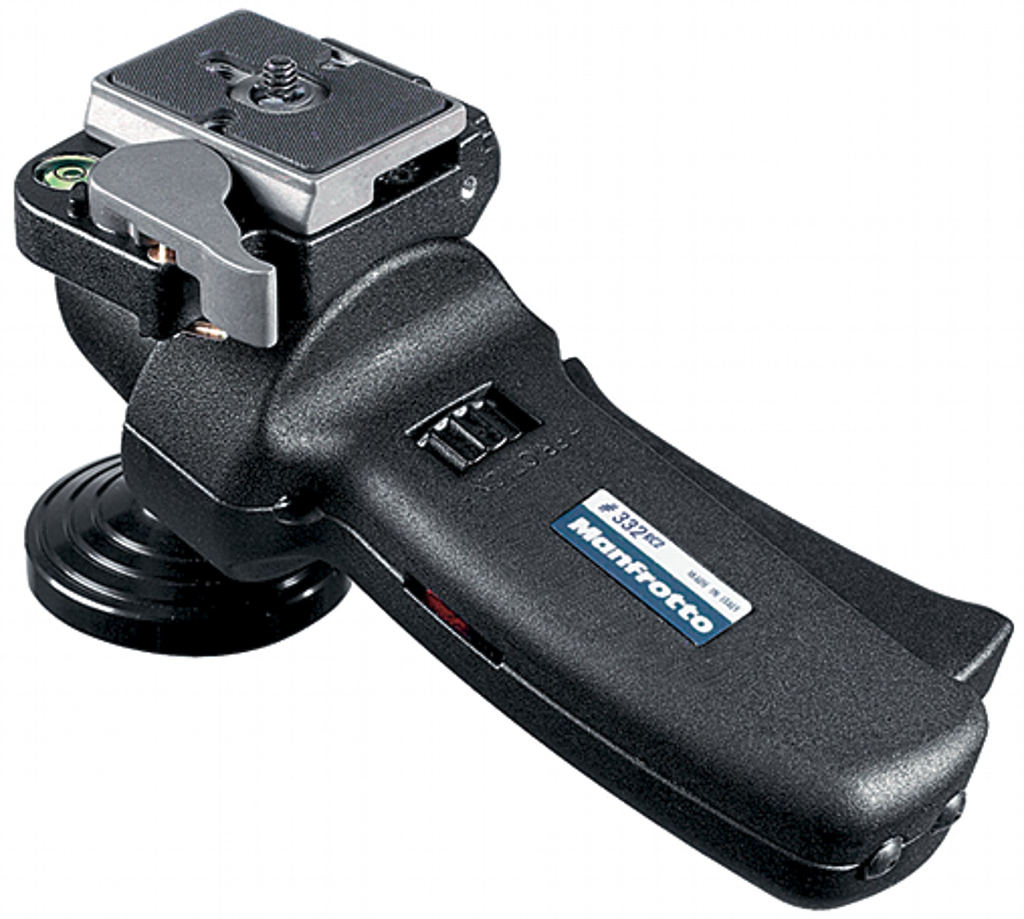 Solider Kugelkopf speziell für die Action-Fotografie, ergonomischer Handgriff mit Schnell-Lösung und -Arretierung, Friktion stufenlos einstellbar, Nivellierlibelle, Schnellwechseleinrichtung mit Sicherungshebel, Schnellwechselplatte 200PL-14, 1/4" Kameraschraube, Farbe Schwarz – Rotation 360° – Neigung (vor/zurück) -90° bis +90° – Seitenneigung -3° bis +90° – Höhe 10,3 cm – Gewicht 0,7 kg – maximale Belastbarkeit 5 kg