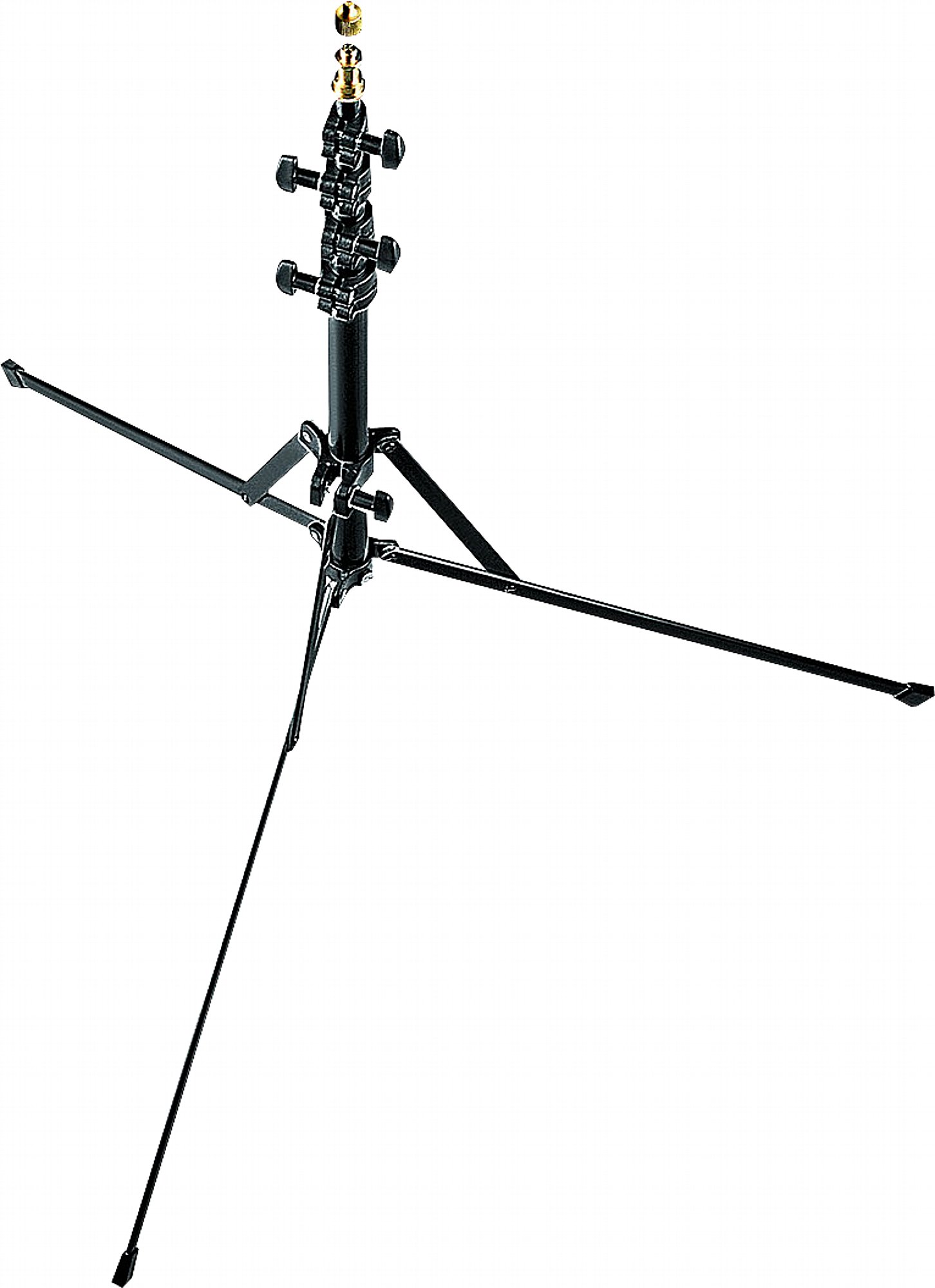 Leuchtenstativ mit 5 Sektionen inkl. Adapter 015, Material Aluminium, Farbe schwarz – Rohrdurchmesser 25, 22, 19, 16 und 13 mm – 5/8" Zapfen mit 3/8" Außengewinde (Adapter auf 1/4" liegt bei) – Max. Höhe 190 cm – Länge zusammengeschoben 48 cm – Stellfläche Durchmesser 100 cm – Max. zentral anliegende Last 15 Kg