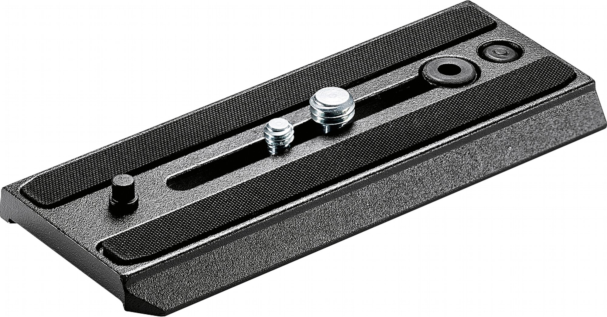 Die Schnellwechselplatten der Manfrotto 500er Serie werden primär für Videokamera eingesetzt. Doch auch Teleobjektive mit Stativschelle beziehungsweise Spektive können problemlos auf den aus Aluminium gefertigten Schnellwechselplatten montiert werden. Die Stativplatten der 500er Serie sind in den Längen 90, 120, 140 und 180 Millimetern erhältlich. Auf der Oberseite besitzen die Platten zwei gummierte Streifen, um dem befestigten Gerät mehr Halt zu bieten. Zudem verfügt jede Platte über einen herausnehmbaren Video-Pin sowie einer 1/4" Schraube und ein 3/8" Überwurfgewinde.