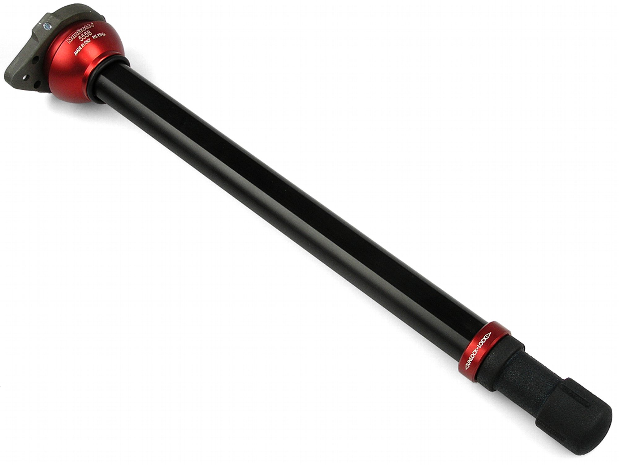 Mittelsäule mit Nivelliervorrichtung für Stative der Serie MA 055. Mit dieser Innovation können Sie Ihre Foto- oder Videokameras bequem und schnell nivellieren, ohne die Position und Auszugslänge der Beine verändern zu müssen. Damit ist eines der häufigsten Probleme bei Videoaufnahmen von Manfrotto elegant gelöst worden. Dank der Verwendung einer Nivellierhalbkugel von 50 mm Durchmesser, welche am oberen Ende der Mittelsäule fixiert ist, kann der Winkel der Neigekopfauflage individuell ausgerichtet werden. Die Halbkugel wird mit einem Drehgriff arretiert und gelöst, welcher sich am Ende der Mittelsäule befindet. Dieser Griff wird beim Einsetzen der Mittelsäule einfach abgeschraubt. Die Halbkugel verfügt über eine eingebaute Nivellier-Libelle sowie eine 3/8“ Kameraschraube (m), welche zur Befestigung eines Foto- oder Videoneigers dient.
