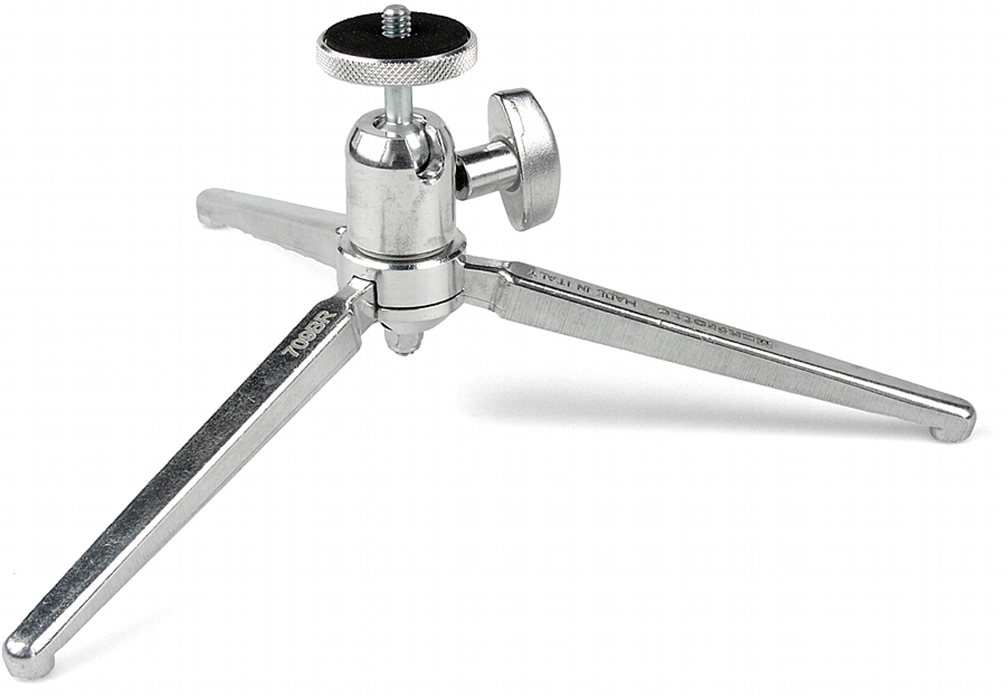 Ganz in Silber-Metallic präsentiert sich das Digi 709 Tischstativ, die preisgünstigste Variante der Manfrotto Tischstative. Es besitzt aber die gleiche gute Standfestigkeit aller drei Varianten (geeignet für Kameras bis 2 kg), da die Mechanik des Unterteils identisch ist. Die drei sehr stabilen ausklappbaren Beine bilden eine große Standfläche. Die Füße haben Kork-Auflageflächen und lassen dadurch empfindliche Oberflächen heil. Das Manfrotto Digi 709 besitzt einen kompakten, fest angebauten Kugelkopf und hat dadurch das kleinste Packmaß unter den Tischstativen vom Manfrotto.