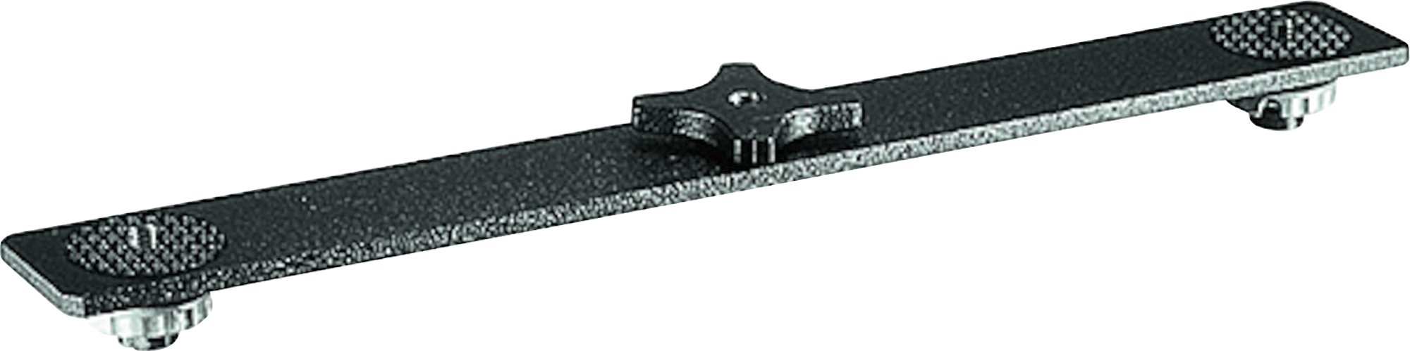 Die Manfrotto 828 Adapterschiene erlaubt zwei Kameramontagepositionen über 3/8"-Schrauben. Am Stativ wird die Adapterschiene ebenfalls per 3/8"-Schraubverbindung befestigt.