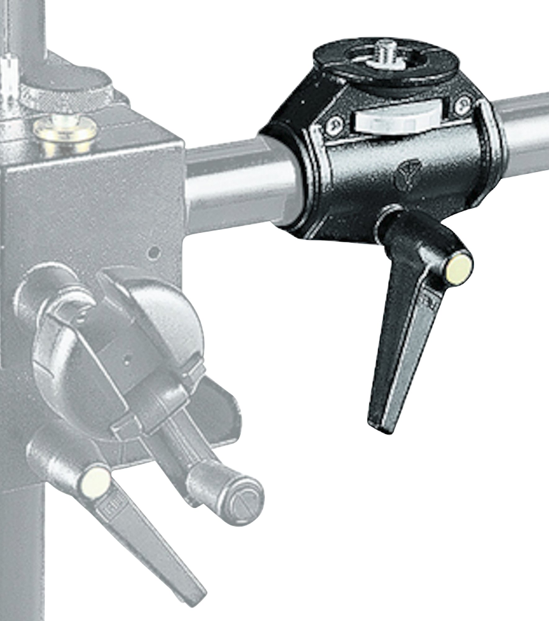 Der Manfrotto 840 Zusatzkameraträger und erlaubt die schnelle Montage einer Kamera auf dem horizontalen Ausleger des Säulenstativs.