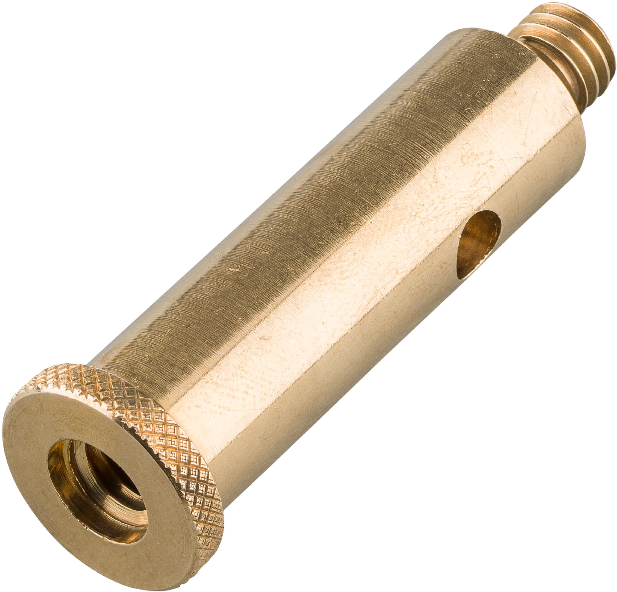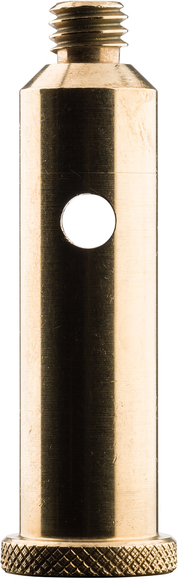 Hilfreicher Stativadapter aus Messing, der von einer 3/8" Gewindebuchse unten und 3/8" Gewindebolzen oben.