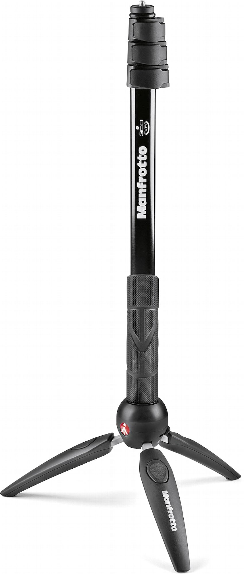 Das Manfrotto PIXI Evo Kit wurde zur Unterstützung kleiner 360°-Kameras entwickelt. Das Kit besteht aus einer speziell adaptierten Version des PIXI Evo und einer Verlängerung mit 4 Segmenten aus Aluminium mit einem 1/4 Zoll Außengewinde zur Befestigung einer Kamera. Die Verlängerung kann vom Stativ gelöst und separat als Selfie-Stick verwendet werden. Die maximale Belastung des Stativs beträgt 1 Kilogramm und bei maximalem Auszug 150 Gramm.