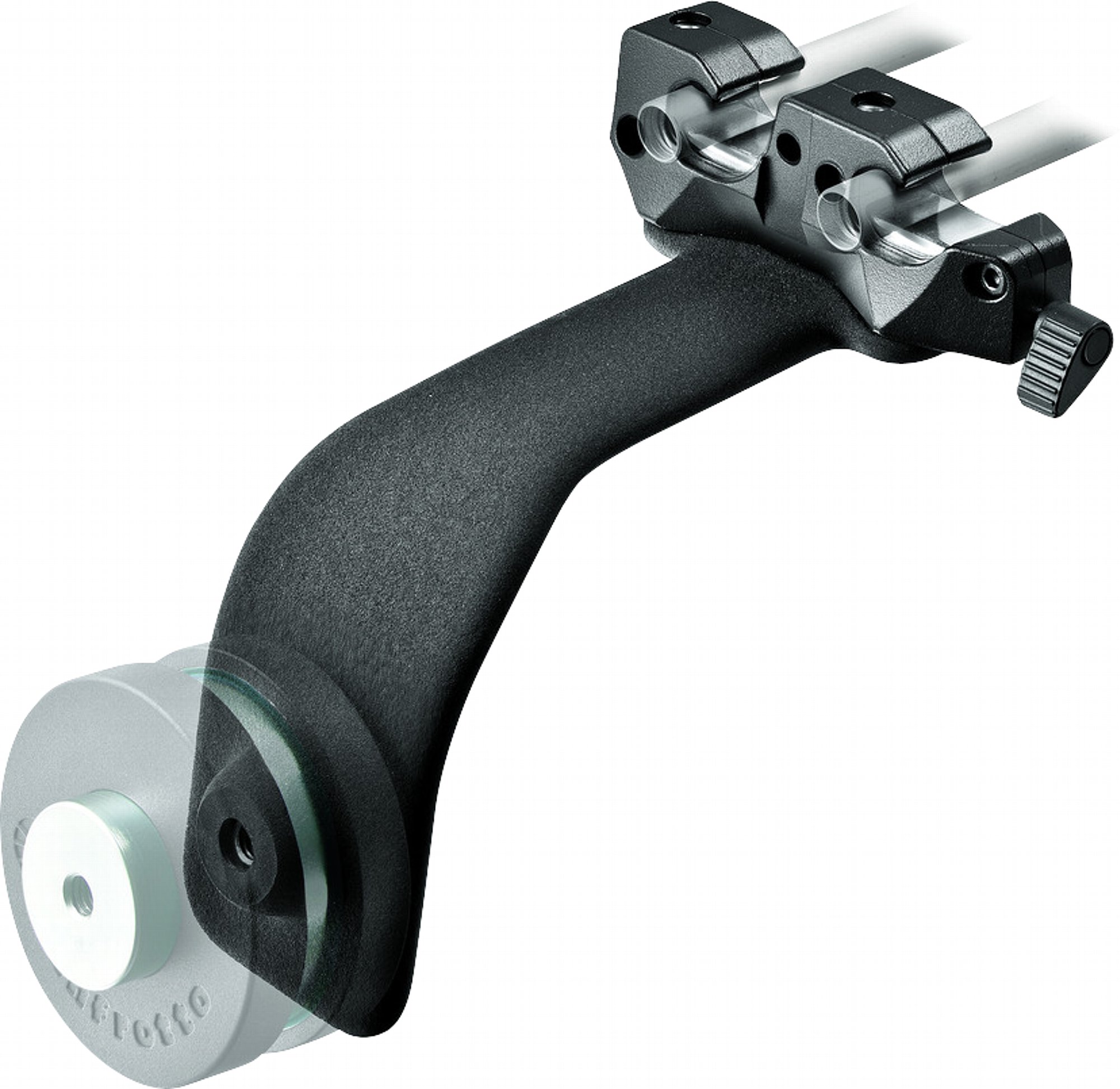 Eine rutschfeste, gummierte Schulterauflage, die an einer Sympla Universalhalterung montiert ist ermöglicht ein bequemes, stabiles und sicheres Filmen von Hand. Am hinteren Teil der Schulterauflage befindet sich ein 3/8''-Gewinde, an dem ein oder mehrere Sympla Gegengewichte zum Ausgleich der vorne angebrachten Last befestigt werden können.