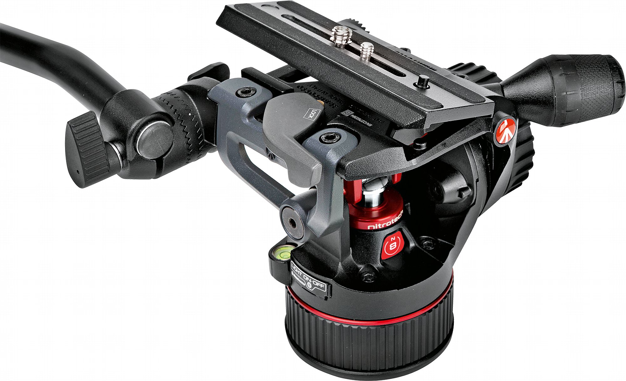 Das Herzstück des Nitrotech N8 MVGN8AH Videoneigers ist der von Manfrotto entwickelte Nitrotech-Dämpfer. Der Dämpfer kann dank des genau einstellbaren Gegengewichts Kameras von 500 Gramm bis 8000 Gramm präzise auf Position halten, dies war bislang nur wesentlich teureren High-End-Stativköpfen vorbehalten. Sowohl die Friktion der horizontalen und vertikalen Schwenkebene kann manuell angepasst werden. Als Schnellwechseleinrichtung dient die 504PLONG, die zur Sicherheit vom Kopf doppelt gesichert wird. Ein gegen Verrutschen gesicherter Easy-Link-Anschluss kann mit passenden Friktionsarmen weiteres Zubehör aufnehmen. Als Anschlussgewinde dient dem Nitrotech N8 MVGN8AH ein ⅜” Gewinde. Als Gewicht bringt der Stativkopf 2,2 Kilogramm auf die Waage.
