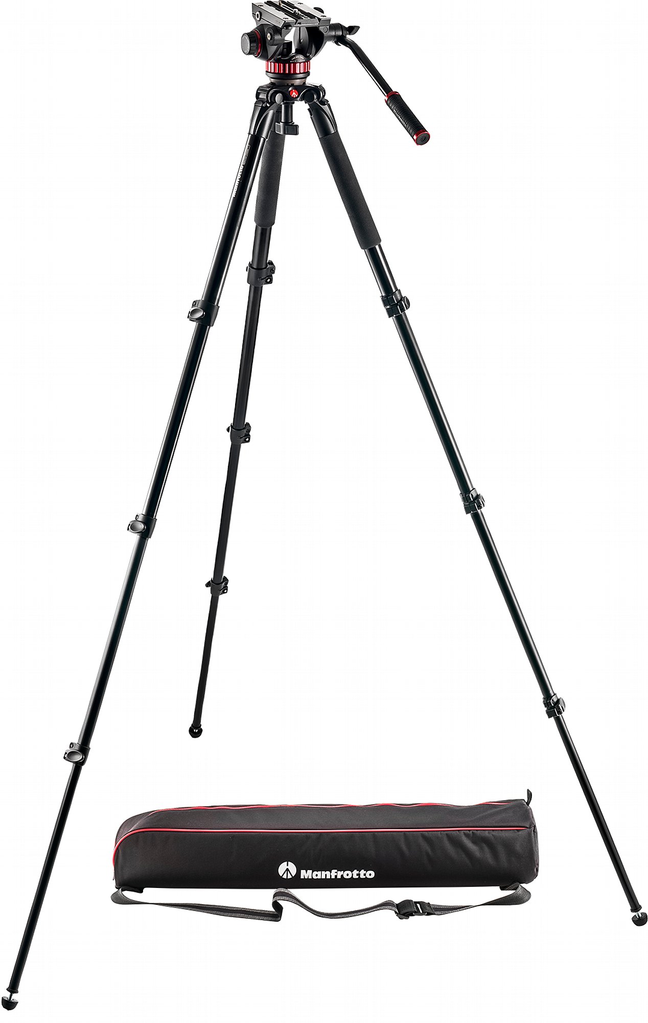 Das MVK502AQ Fluid-Videosystem umfasst den MVH502AH Fluid-Videokopf (mit flacher Basis) und das MVT535AQ Aluminiumstativ in Einzelrohr-Ausführung.