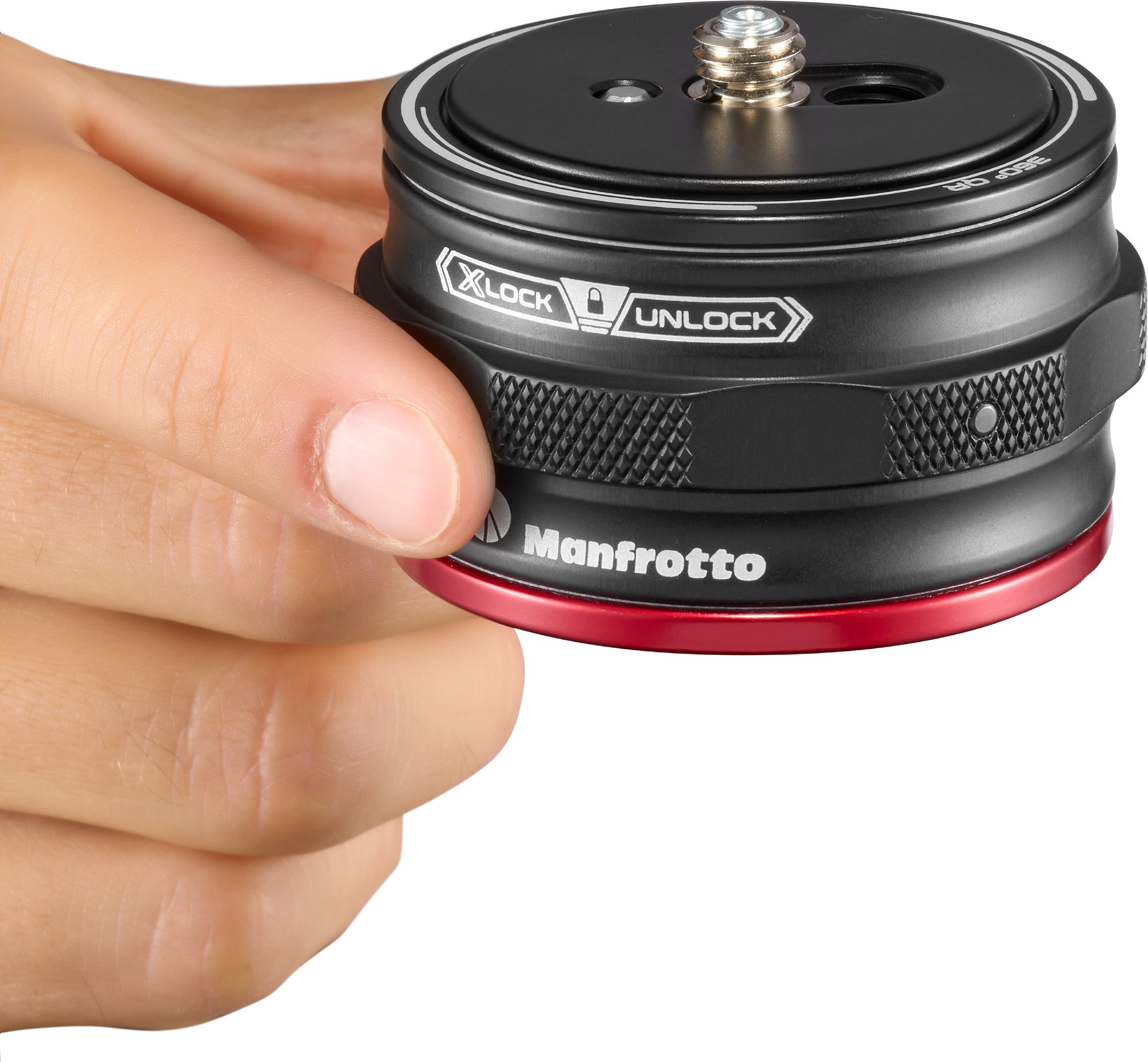 Das MOVE Quick Release System (MVAQR) ist aus hart eloxiertem, gefrästem Aluminium gefertigt, so dass es stark genug ist, um eine beeindruckende Nutzlast von bis zu 20 kg. zu tragen. Mit seinem schlanken Design und 220 g Gewicht ist es außerdem ein sehrt leichtes Schnellspannsystem. Das X-LOCK System von Manfrotto erhöht die Steifigkeit des umfassenden Kits am Montagepunkt durch seinen intuitiven Drehverschlussmechanismus.